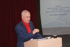 На завершающем этапе события педагоги вновь собрались в актовом зале. Со словами приветствия к присутствующим обратился директор учреждения – Олег Владимирович Цитцер, который дал высокую оценку деятельности педагогического коллектива.