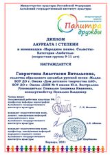 Во втором полугодии 2020 – 2021 учебного года Образцовый ансамбль русской песни «Млада» стал дипломантом конкурсов: