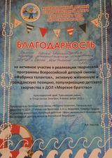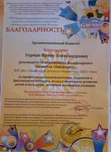 Участие в XVI Всероссийском фестивале-конкурсе детского и юношеского творчества «Кубань – самое яркое солнце России» было отмечено дипломом II степени.