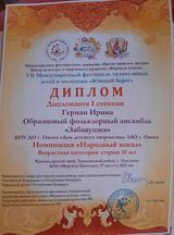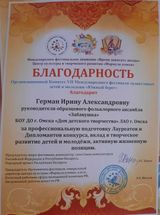 Дипломом лауреата была отмечена и руководитель ансамбля – педагог дополнительного образования Герман Ирина Александровна.