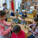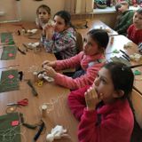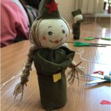 В практической части мастер-класса обучающиеся совместно с родителями и педагогами смастерили из лоскутков ткани и деревянной основы солдатиков по принципу традиционной народной куклы.