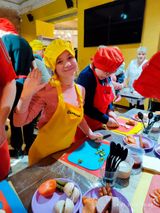 Мастер-класс весело и задорно провела повар Екатерина, которую дети с теплотой называли тётя Катя. Она показала, как правильно растягивать тесто для пиццы, рассказала почему у пиццы краешек свободный и много чего интересного и полезного.