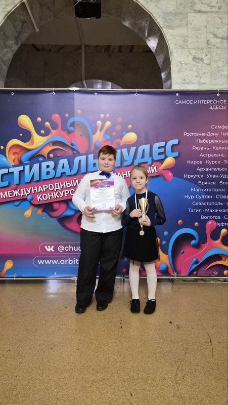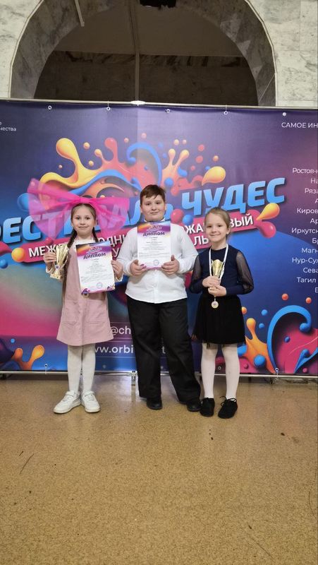 25 января юные артисты Образцового театра праздника "Гротеск" (руководитель Давыдов Вячеслав Иванович, педагоги дополнительного образования Давыдова Дарья Вячеславовна, Ларина Варвара Владимировна) и Театральной студии "Форма" (руководитель Ларина Варвара Владимировна) приняли участие в Международным многожанровом конкурсе "Фестиваль Чудес"!