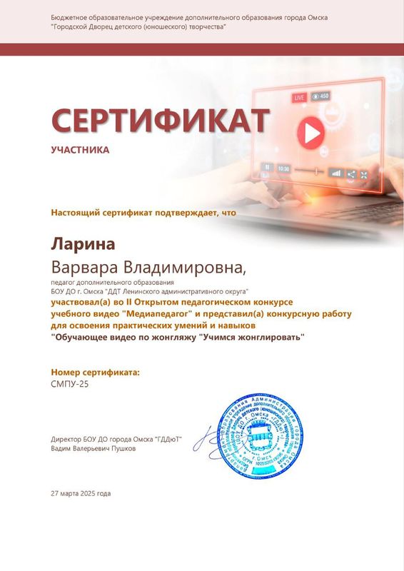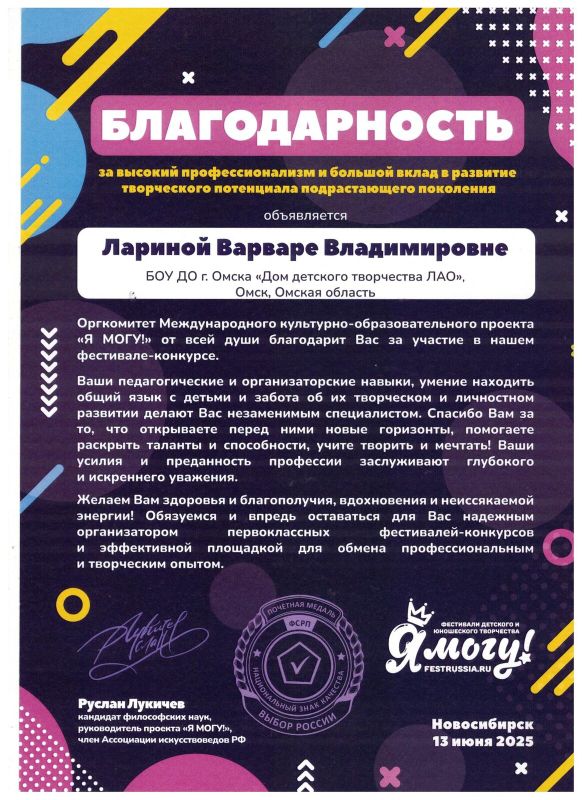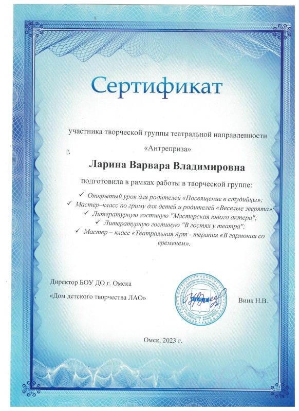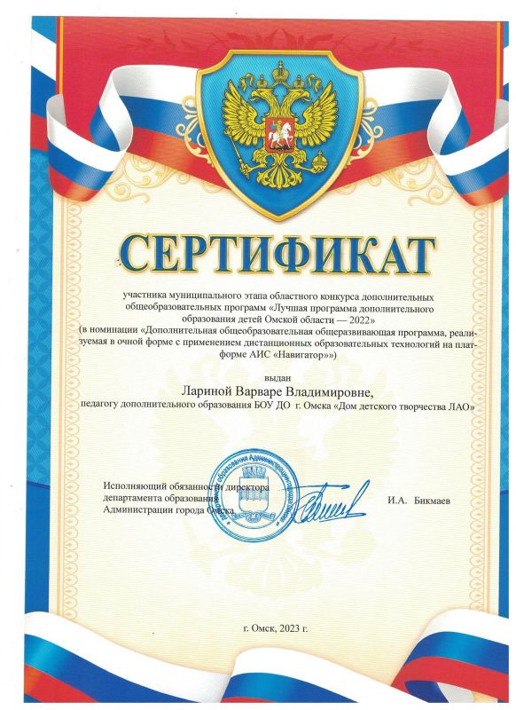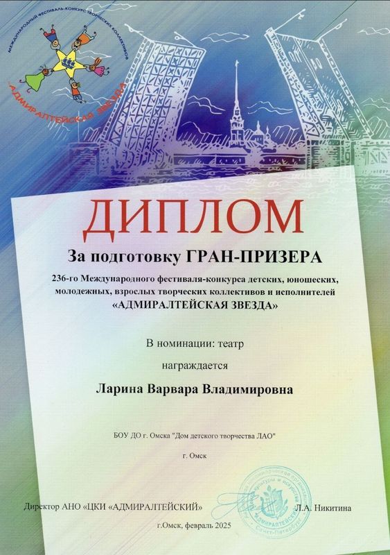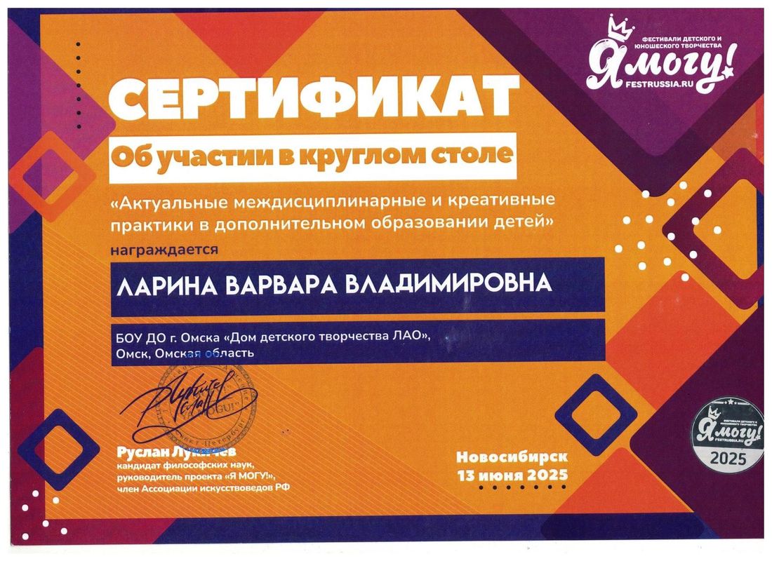 педагог дополнительного образования БОУ ДО г. Омска «Дом детского творчества ЛАО»,
