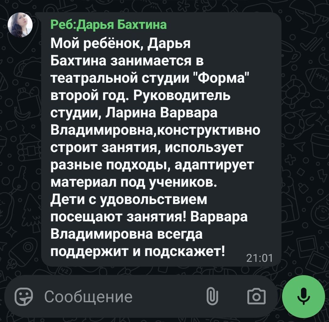 руководитель театральной студии «Форма», педагог по сценическому движению Образцового театра праздника «Гротеск»,